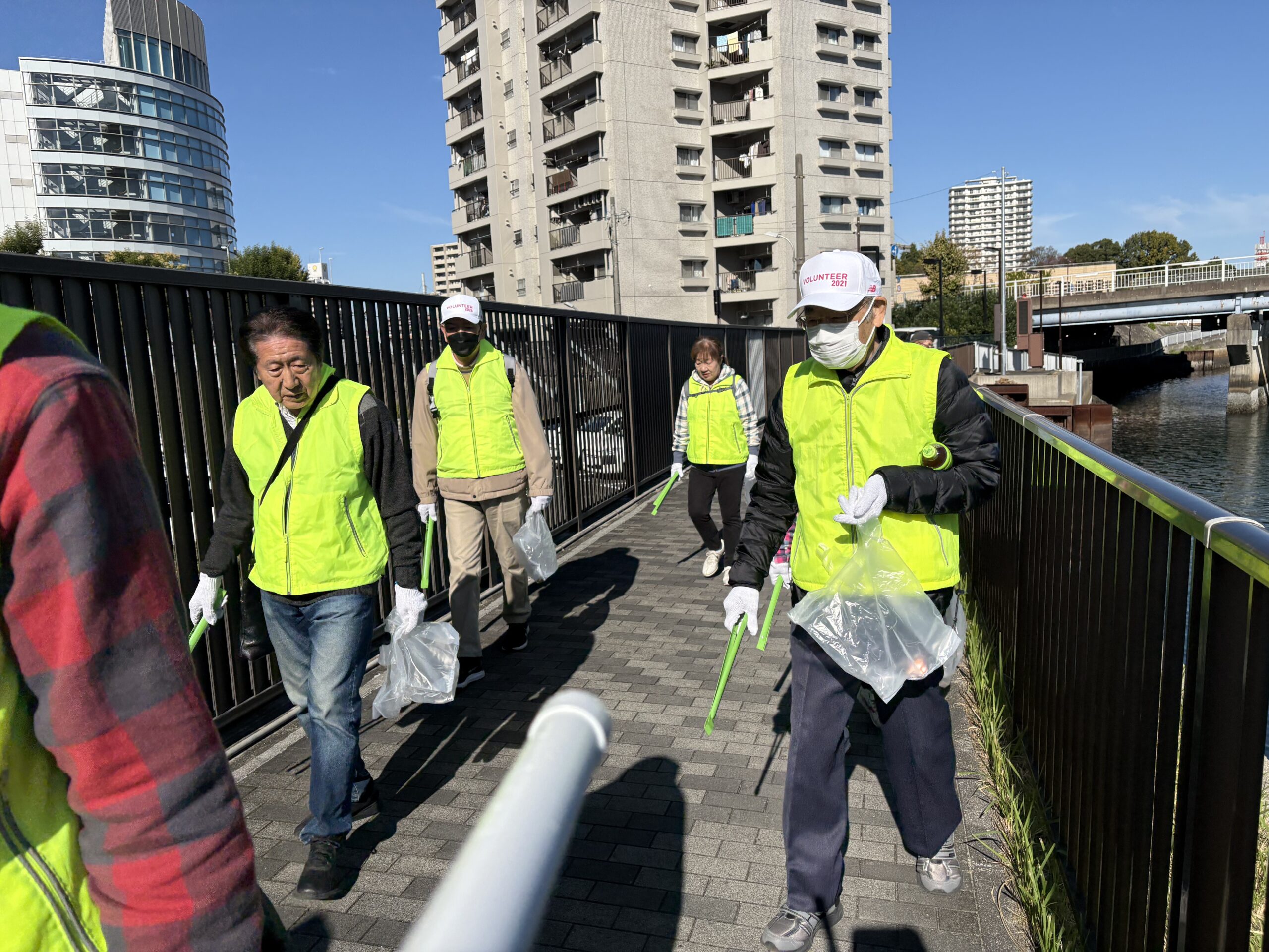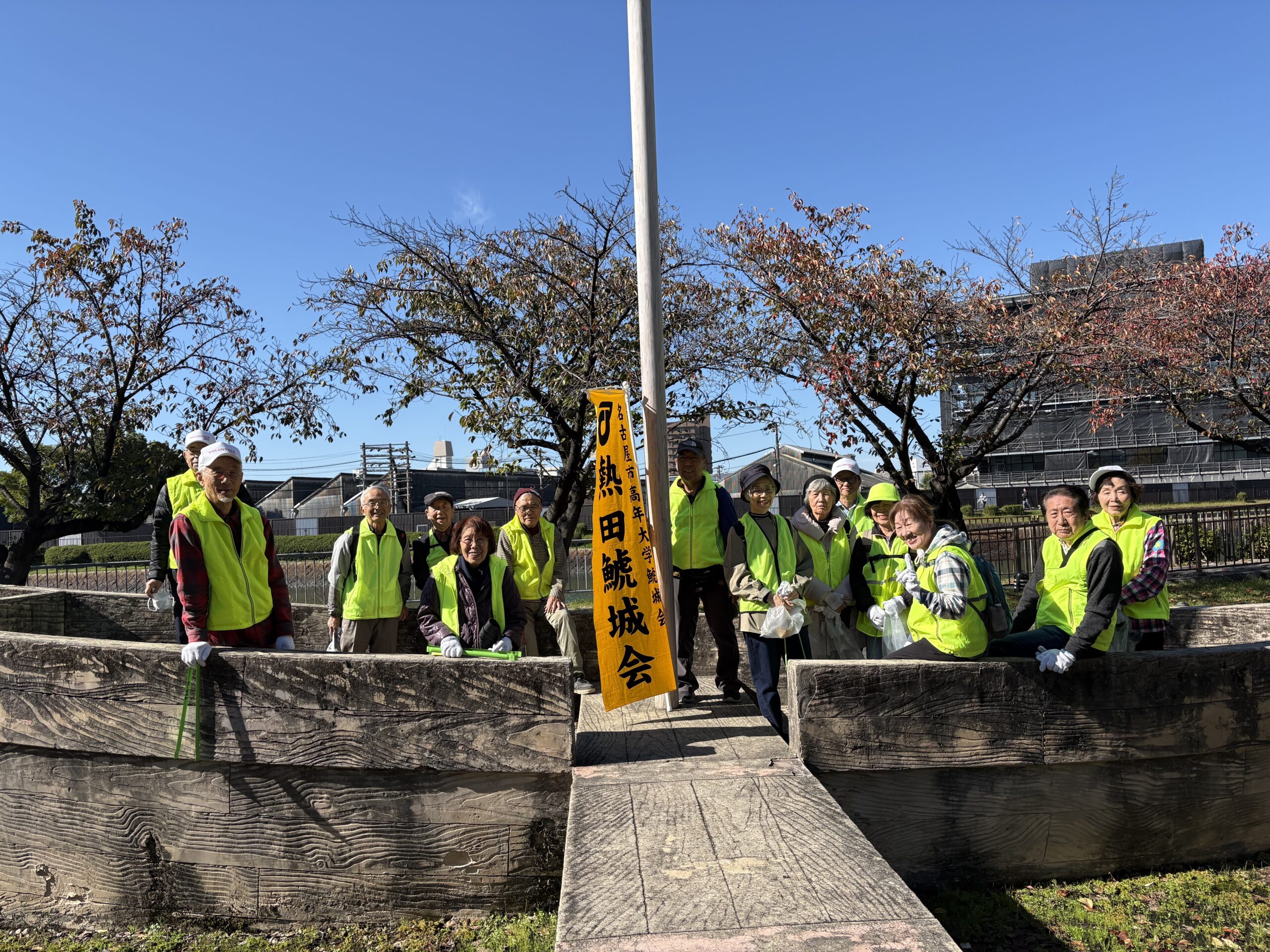 令和7年11月15日堀川清掃大作戦に12名で参加しました。集合場所の白鳥橋際、堀川橋公園に集まり、火バサミと軍手、ビニール袋を受け取り、集合写真を撮って出発です。 コースは白鳥橋を渡って堀川端をゴミを拾いながら進み、大瀬子橋を渡って対岸に戻り、そのまま宮の渡し公園へ、そこから引き返して堀川端公園に戻るルートです。 比較的寒くもなく、天気も良く、良い運動ともなりました。