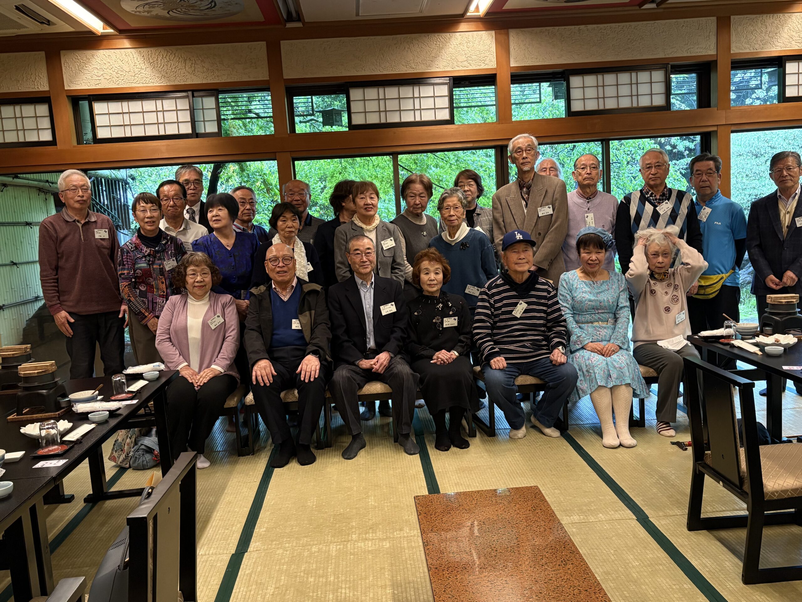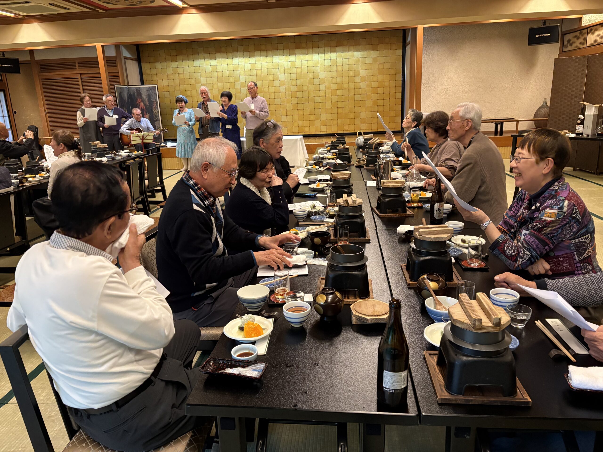 令和8年4月10日開催された熱田鯱城会総会終了後総会会場と同じ賀城園において懇親会が開催されました。 次第は次のとおりです。 ①参加者全員で記念撮影 ②開会挨拶 ③会長挨拶 ④山本会員名古屋市長からの感謝状披露、磯部会員出版された書籍の披露 ⑤乾杯 橋本会計監査 ー 食事懇談 ー ⑥合唱 熱田鯱城会応援歌他 平野会長のギター伴奏 ⑦民謡踊り ダンシングヒーローほか ⑧閉会挨拶 寺田前会計監査