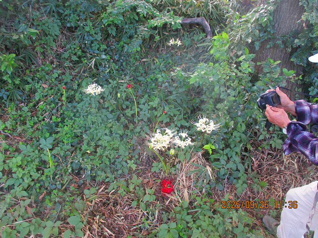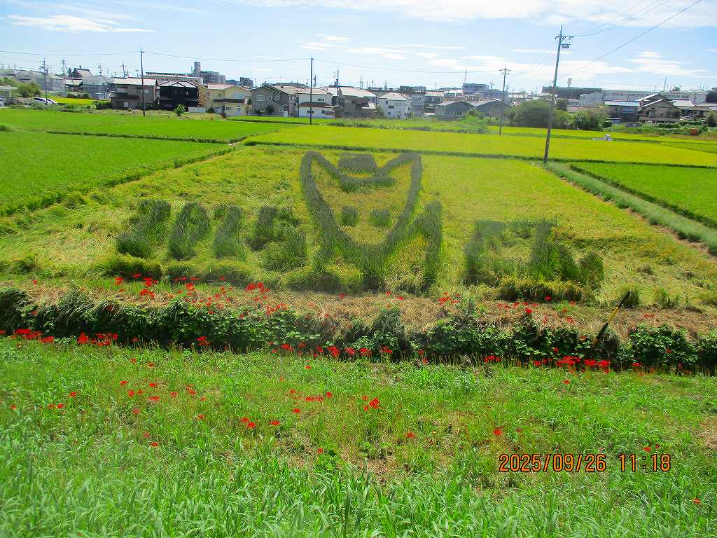 しかし皆元気で矢勝川を歩きます。途中で田んぼアートの所で写真を撮り、白いヒガンバナも撮りました。