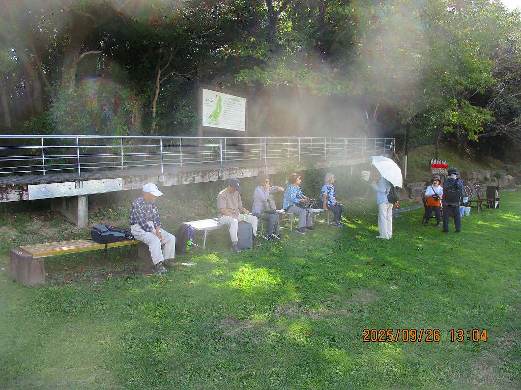 ちょうど正午のお弁当タイムです。そしてお菓子のお裾分けとお喋り、その後は森歩きと記念館グループに