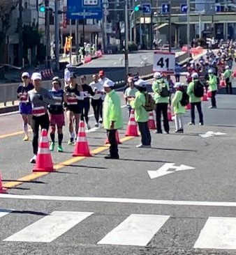3月8日(日)首記フェスティバルが行われ、当鯱城会から30名がボランティアとしてコース整理を行いました。担当エリアはゴール間近の41キロ地点周辺です。