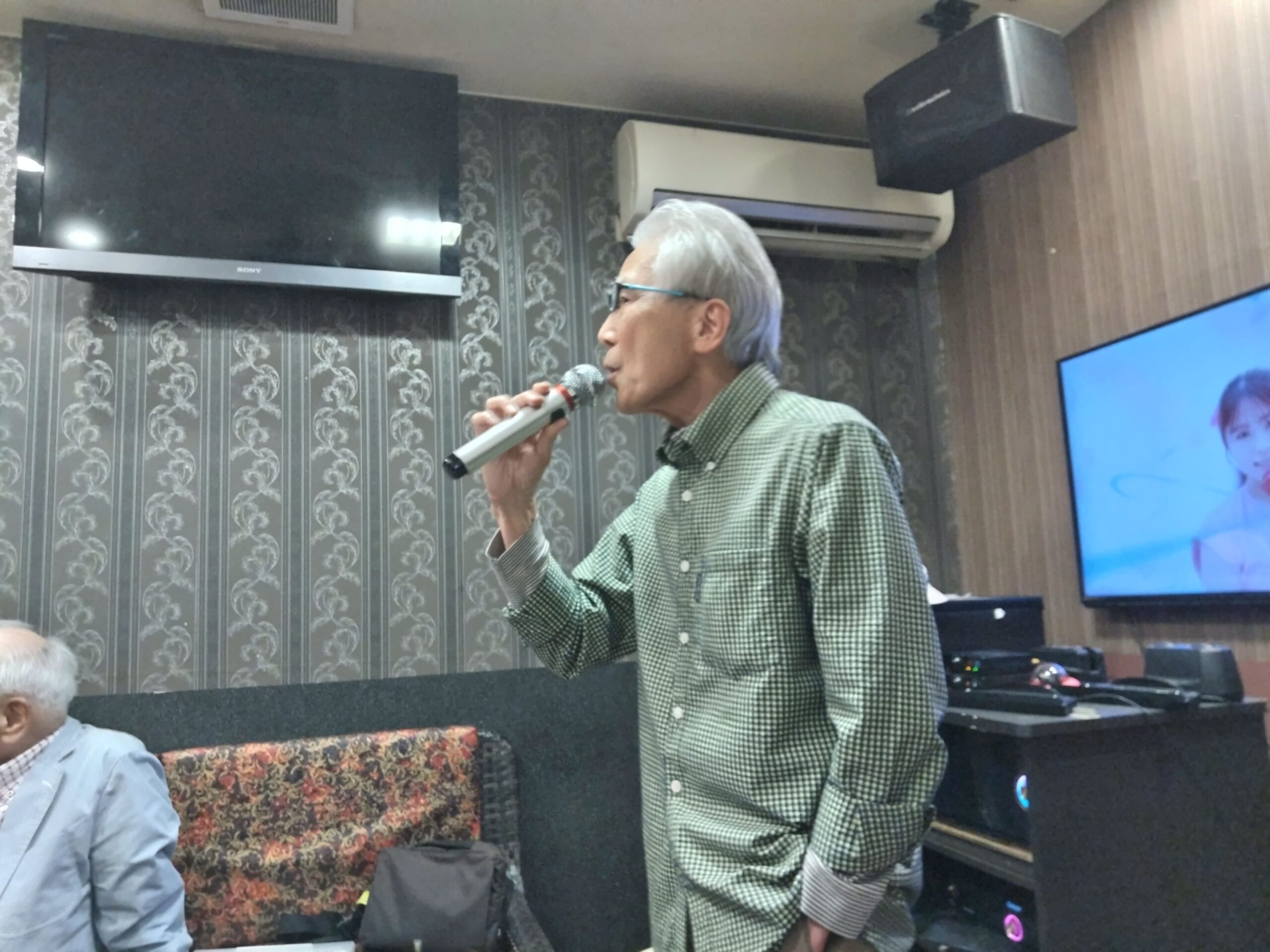 4月17日、北区の客人をお迎えしてのカラオケ同好会開催風景