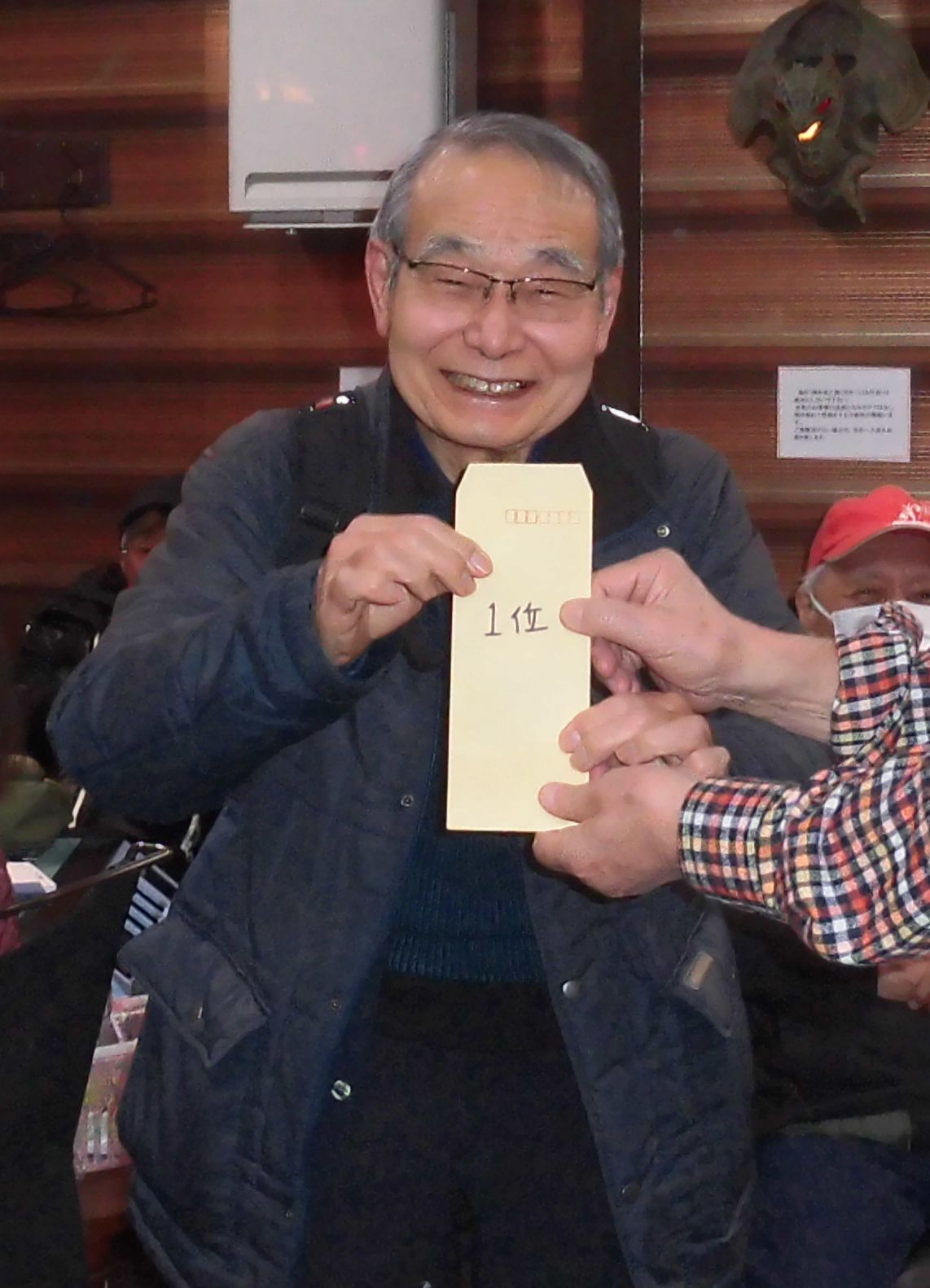 本当に.ありがとうございました。感謝の 気持ちでいっぱいです。3回戦の、試合で、1回目も、2回目も、マイナス2、マイナス2 でした。3回目に、プラス25、になりましたが、絶対、トップだとは、思っておりませんでした。 本当に.ありがとうございました。お正月そうそう、本当に、うれしいです。感謝致します。岡田