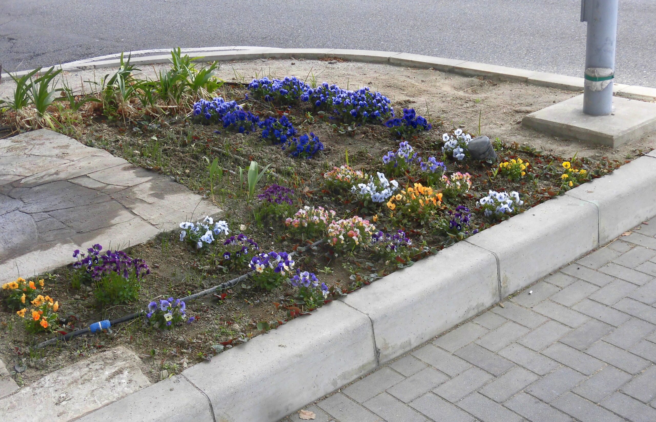 今年の春植えの花苗の「見ごろの時季になりました」近くに寄るタイミングが合えば、🚙の中から、上段の歩道から、是非ご覧下さいー