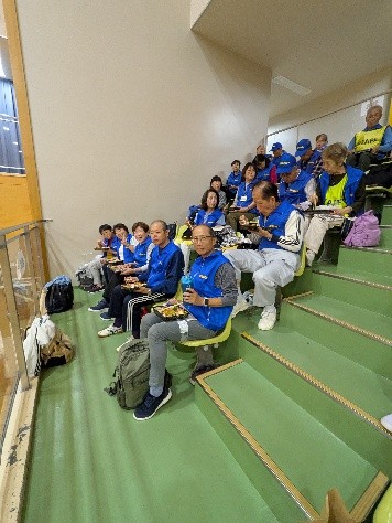 フェスティバル担当者 奥村恭子 令和7年10月24日(金)前日の雨も上がり良い天気に恵まれ、港鯱城会の26名も参加して東スポーツセンターで開催されました。 坂野さんが率いるボッチャのチームが第2コートで1位になり、大窪さんが率いるチームも3位となり、玉入れも昨年に続いて2ランドで1位になり総合4位と好成績でした。怪我もなく1日楽しく過ごせました。 おいしいお弁当も皆さんと一緒に食べられました。参加された皆様お疲れさまでした。