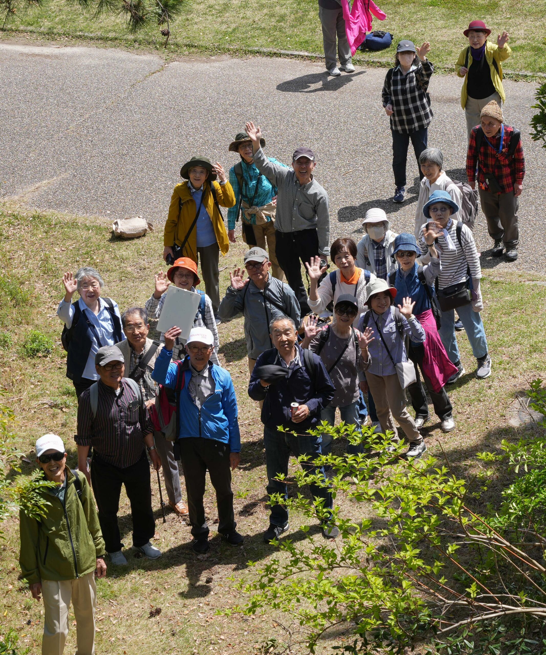 11時半過ぎになり公園管理事務所の北に広がる芝生広場の丘で、初夏を思わせる日差しと風に吹かれて三々五々のレジャーシートでのランチタイムです。