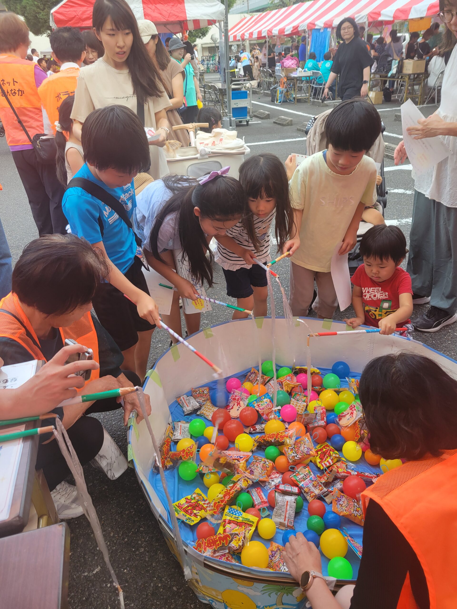 今日9月28日(日)16時から20時30分まで東別院まつりが東別院会館西側駐車場部分で行われました。例年8月下旬の日曜日に行われていましたが、今年は一ヶ月遅れの開催となりました。中鯱城会のミッションは、昨年同様で親御さんがつれてこられる幼児相手に幼児用のプールに予め用意したお菓子の入った袋に輪っか型にモールを作り、お菓子袋にその端をガムテープで止めた物を450個用意しましたが、今年は一か月遅れの開催であった為多少朝晩秋風を感じられる季節となり予想以上のお客さんが来られ18時頃には全て無くなりました。今日中鯱城会からの10名の参加者の皆さんお疲れ様でした。