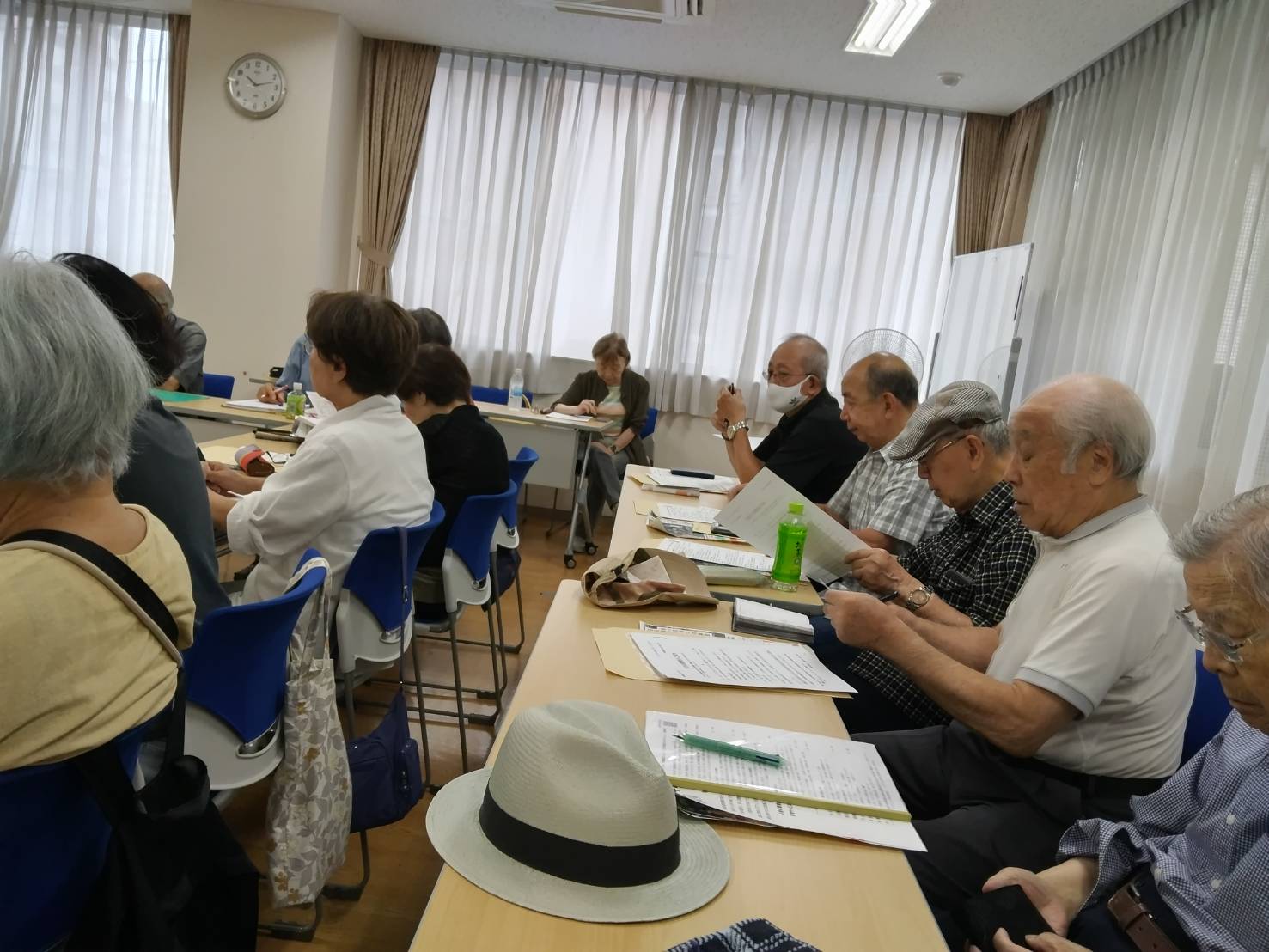 今日は 中鯱城10月レジメ共有できる会です やっと秋らしい天気 家をでたときは23.5℃曇りでした。定例の10時から 大野副会長の議事進行で始まり26人の出席者でした。16期1名38期5名の参加ありました。9月26日~28日までの趣味作品展 訪問者は327名 出展者は46名前年より2名減でした。10月清掃活動 第4回社会見学会の参加者 変更点説明ありました。広報から鯱城だよりの投稿原稿募集 来年の3月8日のマラソンボランティア参加者17名と報告ありました。鯱城会からの堀川清掃大作戦 忘年会の案内あり 参加費が増額され 5000円になりましたと係からの説明 呈茶ボランティア係から参加されている会員からの困りごとや報告があれば 教えてくださいと なかぶんかまつり 前津まつり演芸大会 赤い羽根共同募金ボランティアの募集とあり その後24日の16フェスティバルの応援タイムの練習に一丸となって練習し 閉会しました。追記 18期の会員から 健康麻雀 中ふれあいサロンの参加募集 来年2月1日の鯱城会のカラオケ大会参加者募集がありました