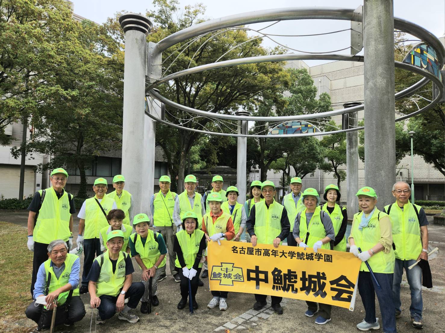 今日は朝から曇り空で前日は小雨が何回かあり開催が危ぶまれましたが 無事活動ができました。22人参加。金山市民会館北 古沢公園に集合 2手?に分かれて 出発。繁華街から離れていることもあり ごみはあまりありませんでした。28期の会員が大きなきのこを見つけてみんなでこれは食べれるのかなと スマホで検索してました。 ごみ集積場所で渡邉は22期会員のかたに 趣味作品展の仏像作成の事や 鯱城学園に入学して本郷まで園芸の講義を受けていて 当時は敬老パスを持っていなくていろいろな手段で通っていたと講義後は学生たちで 飲み会に参加していたという楽しい話が聞けました。参加された22期から38期のかたお疲れ様でした。
