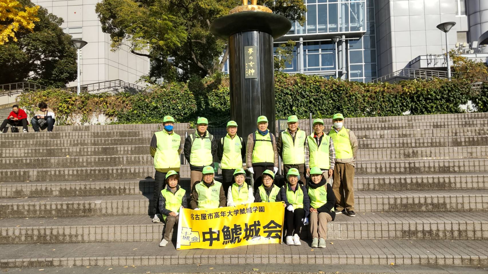 今日は 9時ごろ気温6~7度家を9時15分過ぎでて矢場公園めがけて ひたすら歩く。通り道は黄色の銀杏の絨毯でした。12月になって 平年並みの冬の寒さになってきました。出発時は風なく あまり厚着はやめようと 薄手に中鯱城のビブス 矢場公園に近づくと 若者がキャリングケースひいて 並んでいました。その先にはコスプレのカード持っていた係員らしき人がいました。参加者13人で若い女性の方にスマホ渡し集合写真。2手に分かれて 歩を進める。初めて 参加会員がごみあまりないねと その先は大量のごみでした。私はいつも 可燃ごみ45l 先輩男性会員が袋交換してとその袋はいっぱいでした。次に可燃ごみ20Lを出して ごみ集め。違う先輩男性会員と袋交換。過去の中鯱城会の話等をお聞きして11時前にごみ分別。終了 さかな食堂に着いておなか満たし帰路へ。風がでてきました。参加された14人の会員のかた お疲れ様でした。34期の女性会員のかた12月5日の忘年会幹事に続き、7日の清掃活動のボランティアの係 ご苦労さまでした。いつもありがとうございます。