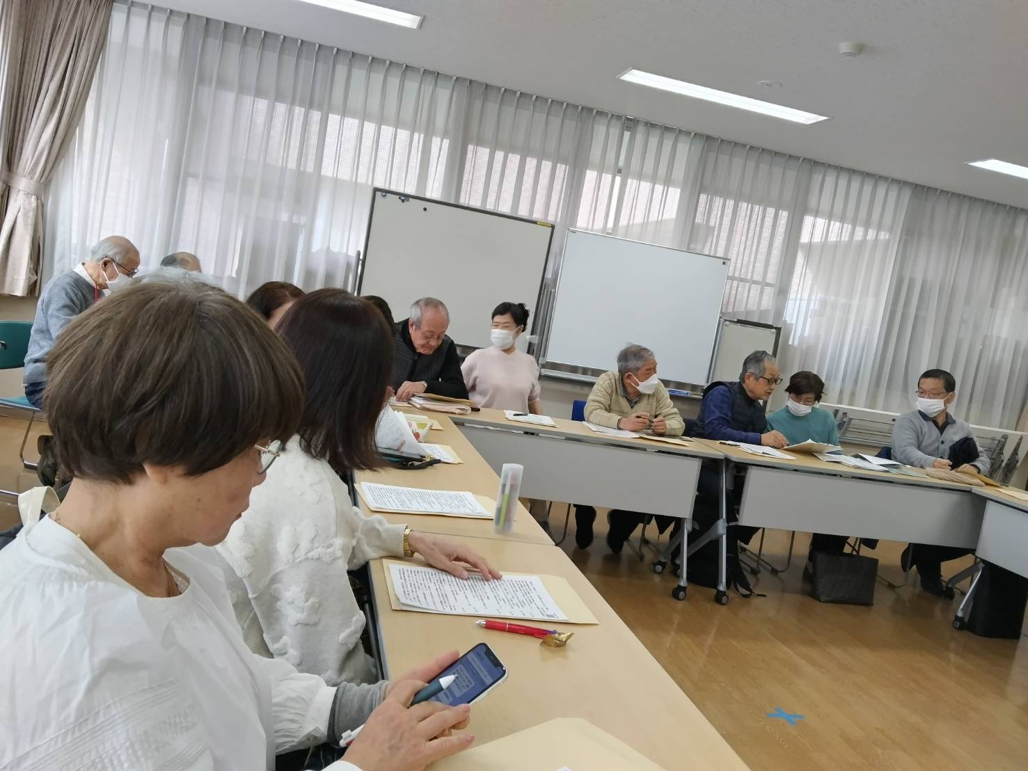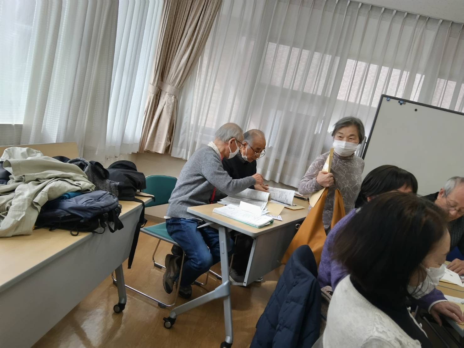 今日は、前日とは変わって風がなく気温は8度前後曇り空の日でした。参加者も多く27名でした。3月のレジメ関連資料と鯱城かわら版4月総会資料のもとづいての承認、不承認を問うために全員のはがき封筒準備しました。38期会員が頑張ってくれました。10時になり大野副会長の発生で始まりました。1番の議題前に25期会員の急死の報告があり、黙とう。3月19日の徳川美術館鑑賞会参加されてました。行事にはほとんど参加されているすばらしい方でした。美化清掃金山地区はごみが少ないので清掃活動場所を変更。39期生の清掃活動用品の準備等の報告あり 4月からは清掃活動の担当者が37期会員に変更になり挨拶ありました。3月8日に名古屋ウィメンズマラソン参加者への説明あり。体調不良のときは無理せず休みのときは報告する。軽食を準備するなどありました。ボランティア保険は以前は全員配布してましたが、今年度からボランティア活動の有無の報告してもらい、必要者希望者に配布する事になりました。39期入会者予定者の準備だんだん変わっていく中鯱城会です10時55分閉会しました。懇親会担当者会計担当会員が残ってお仕事?ご苦労さまです。4月3日中鯱城会懇親会参加者多く、送迎バスが1台に乗れないので、希望とり元気な会員は会場中区瓦町木曽路まで歩くことになりました。手がたくさん上がり 万事休すとなりました。良かった。