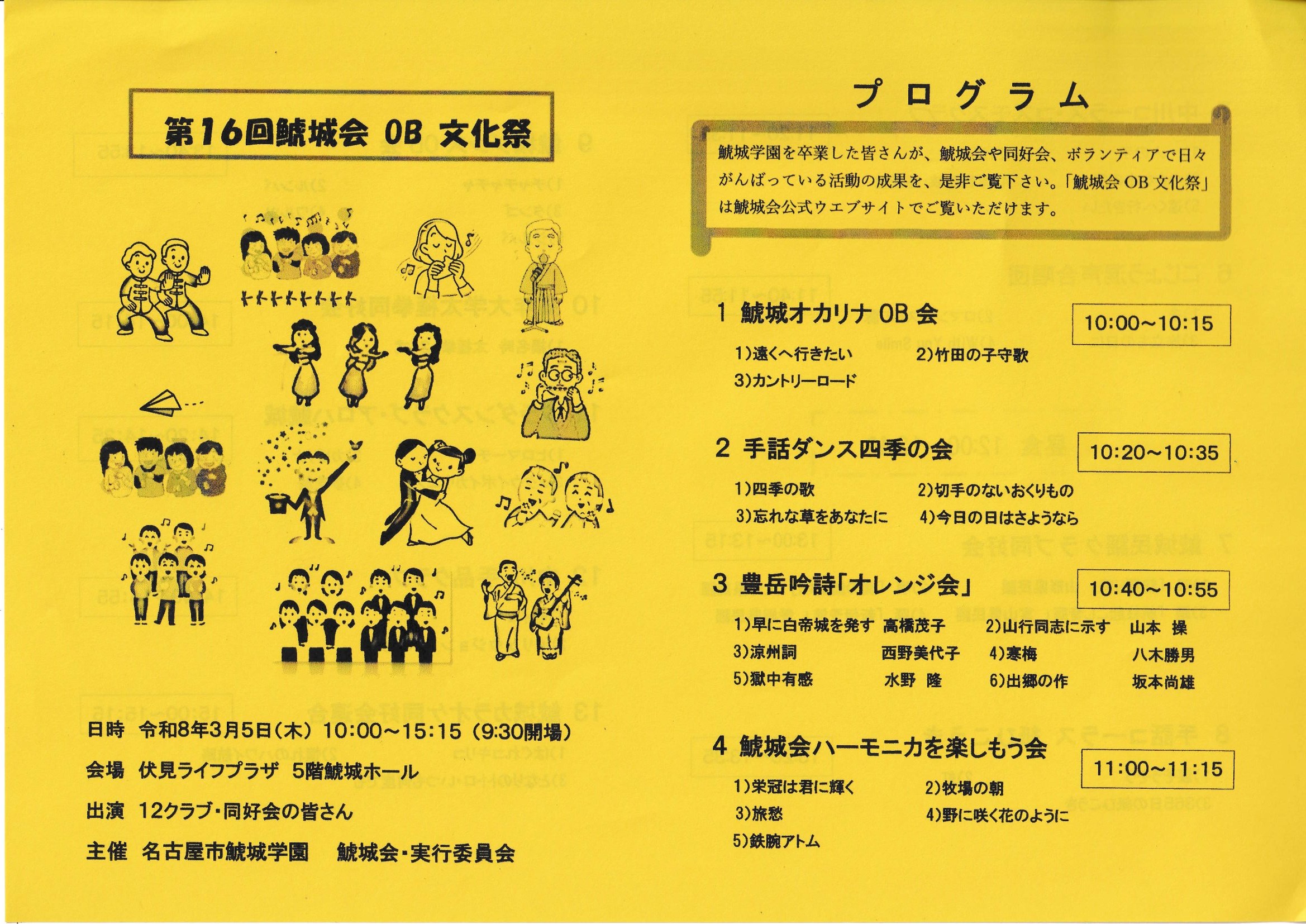 3月5日10時~15時鯱城学園5階ホールにて第15回OB文化祭が開催されます。