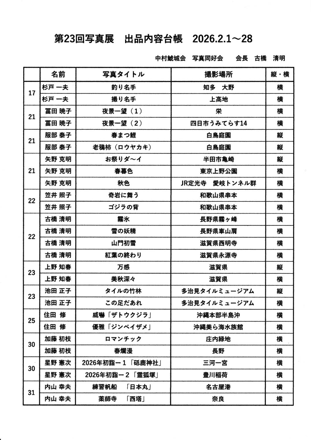 中村鯱城写真同好会作品展を4月1日~28日まで中村生涯学習センター1階ロビーで開催中です。 会員12名の27枚の魅力的な写真が展示されていますので見学ください!